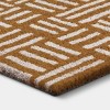 Give your guests a warm and friendly welcome with this Crosshatch Rectangle Outdoor Doormat from Room Essentials™. The rectangular outdoor doormat features an allover white crosshatch pattern for an inviting look. Made with 100% coir and a latex back, this medium-pile doormat helps capture dirt and debris at your doorstep and is easy to shake clean when needed.