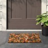 Add decorative style to your entrance with this Rectangle Outdoor Door Mat from Room Essentials™. This rectangular outdoor doormat is adorned with a vibrant Charlcie floral pattern in white, red, blue and green against a brown backdrop for a bright, welcoming look. Made with 100% coir and a latex backing, it has a medium pile that helps capture dirt and debris at your doorstep and is easy to shake clean when needed. Measuring 28 inches long by 16 inches wide, this mat works well at your front door, back door or patio entrance.