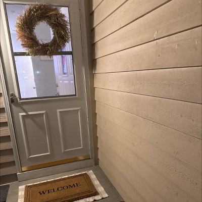 A: The doormat is made of 100% coir, providing durability and a natural look.