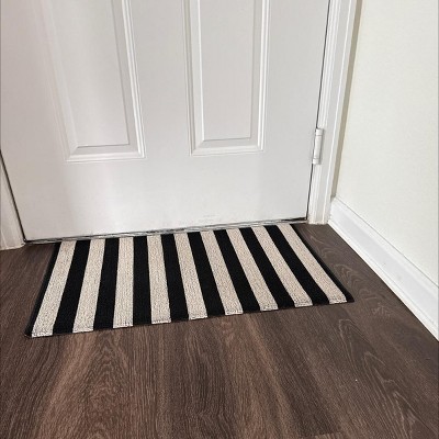 1'6"x2'6" Striped Micro Poly Loop Floormat Black/White - Room Essentials™: Indoor Kitchen & Bathroom Floor Mat