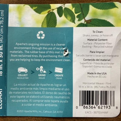 Glad I purchased this rug. It has a good weight and thickness. Even better: the label states it’s made from recycled tires!