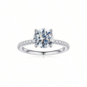 1.5CT Moissanite Ring, 4 Prong Solitaire, Rhodium Plated S925 Silver