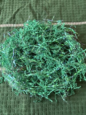 This green paper shred is perfect for use as gift wrap or for Easter baskets. The majority of the shred mix is a nice solid green color with some bright iridescent strands mixed in. This paper shred could definitely be reused!