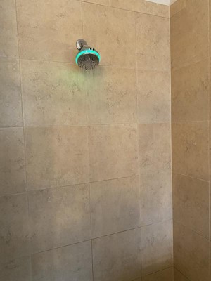 [This review was collected as part of a promotion.] I replaced my shower head with this one and I love it. It turns blue for cold, green for warm, and red for hot. You can also change how the water comes out the of the shower head by touching the top. Great water pressure also.