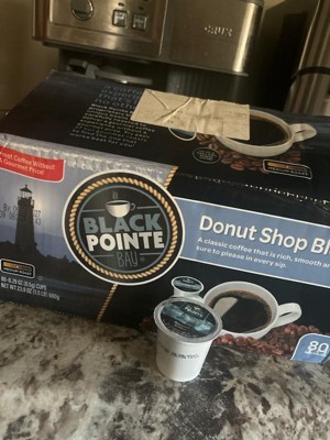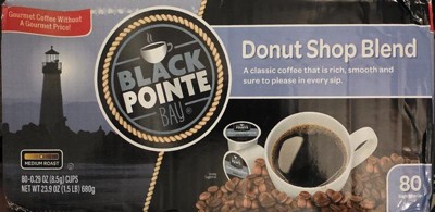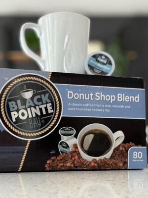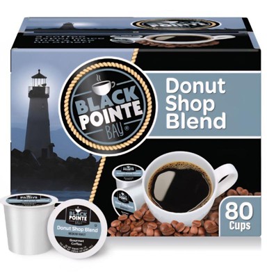 - Contains 1 box of 80 pods of Black Pointe Bay Donut Shop Blend Single Serve Coffee Pods (80 pods total)