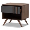 1 Drawer Naoki Two-Tone Wood Nightstand Gray/Walnut - Baxton Studio: Bedside Storage, Splayed Legs, Retro Design