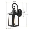 - Features sturdy matte black die-cast aluminum frame and clear glass. This outdoor wall mount lights add a warm vintage feel to the porch, patio, balcony, garage door, front door, hallway, and entryway.