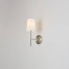 The modern design of Globe Electric's Clarissa Wall Sconce stands out in any home. The vintage lantern shape adds style to any space while the white fabric shade softly distributes light. A brushed nickel finish completes the modern glam motif. Perfect for placing on either side of your bed, above your sink in the kitchen, or above your couch in the living room as a stunning statement piece.