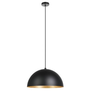 The Rafaelino Single Light Pendant by Eglo features a dome-shaped metal shade with a Structured Black Exterior and Gold Leaf interior finish. It hangs from a 72" Black adjustable cord. The dome-shaped structure both decorates and illuminates any room. It requires 1-60W E26 bulb that is not included Lovers of chic, vintage, and loft styles will be very happy: Lights designed with a used look. Experience a journey through time with lamps reminiscent of the 1920s to the 1980s. Indulge in nostalgia and give your home a vintage style.