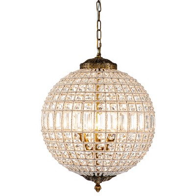 LLHZSY LLHZSY 1/3/5-Light Retro French Crystal Globe Chandelier-Beaded Accent Globe Shade, Adjustable Height-Antique Brass/Antique Bronze