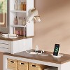 - Clear Glass Top Vanity Transparent tempered glass desktop shows drawer contents for quick access Easy clean surface includes removable dividers for customizable storage organizationFive Drawer Vanity Desk Spacious storage with five drawers six open shelves and extendable tabletop keeps beauty essentials tidy and within easy reachCorner Vanity Design Multi functional lighted mirror vanity works as nightstand or makeup station fits perfectly in any room cornerVintage Style Vanity Antique white finish with rustic charm features smart LED mirror with cold natural warm light settings adjustable via touch controlCharging Vanity Station Built in power hub with two AC outlets and two USB ports charges devices and powers styling tools simultaneously