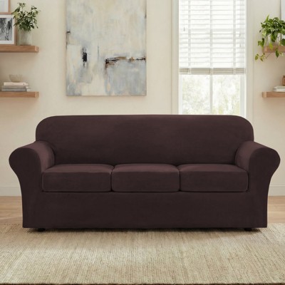 Our sofa cover/loveseat cover and chair cover are made of form-fitting stretch fabric. Easy to put on and very conformable to sit on. This sofa slipcover comes in one piece which goes over the whole chair, perfect to your sofa/loveseat and chair from etc. So they are good to you. This sofa covers not only your furniture ensuring it lasts for years to come but also add luxurious new look or refresh your existing home decoration. Sofa size between: Small Size Back Length 35-51 inches (90-130 cm) Approx. Medium Size Back Length 53-67 inches (135-170 cm) Approx. Large Size Back Length 69-86 inches (175-220 cm) Approx. X-Large Size Back Length 88-114 inches (225-290 cm) Approx. 1 Free cushion cover size: 17 to 17 Inch( without the pillow inner). 2. Normally, slipcover size should be slightly larger than the sofa size. How to install:Steps 1: Position the slipcover over the sofa with the label at the back. Steps 2: Pull the fabric evenly over the sofa, and push white sponge cylinders in spaces between the cushions, shaping the cover to the sofa and keeping the fabric tight. Steps 3: Tilt the sofa up and find elastic ties. Pull the front and back ties together tightly and tie. Pull the side ties together and tightly. Steps 4: Put the sofa down and pull cover tight, pulling any excess fabric to the back. Steps 5: Enjoy your newly covered sofa!