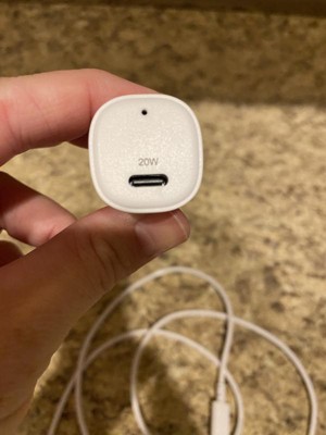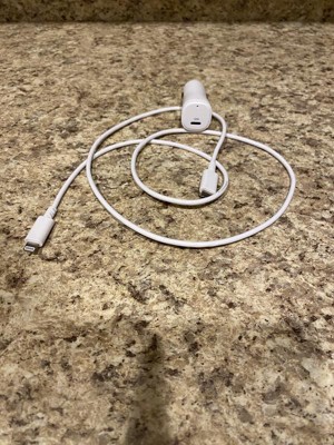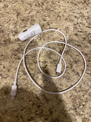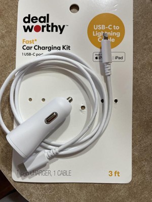 1-Port 20W Car Charger with 3' PVC Lightning to USB-C Cable - dealworthy™ White: Charge Indicator, Short Circuit Protection