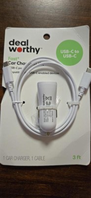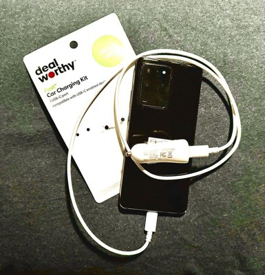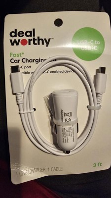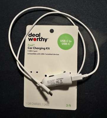This DealWorthy USB-C car charging kit for my phone and other devices is super useful. It comes with a 20W max output charger and plugs into the car's cigarette lighter port. It offers "fast" charging which is great when I'm driving to work/home and (obviously) not using my phone at that time. This USB-C to USB-C car charger comes with a 3-foot length cord (nice) as well as a built-in safety feature to prevent it from overheating. It's a godsend to me since my last (another brand) charger just stopped working. Also it comes in white so it's not easily lost in my vehicle. Highly recommended.