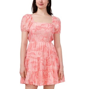 1.STATE Womens Floral Puff Sleeve Fit & Flare Dress