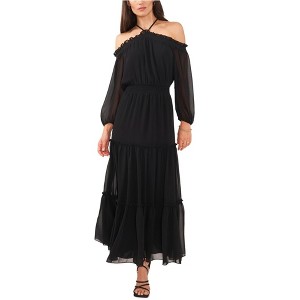 1.STATE Womens Solid Tiered Pleated Off-Shoulder Maxi Dress