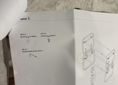 The small pieces of plastic holding the shoe rack together broke immediately upon putting a pair of shoes on it.