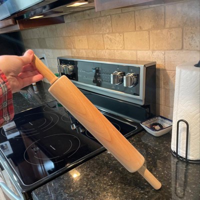 - 10in wooden rolling pin in natural light brown finish