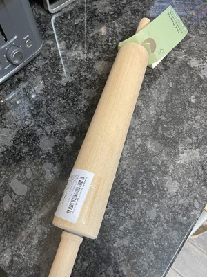 10" Wood Rolling Pin Light Brown - Figmint™: Handled Wooden Roller for Baking, Hand Wash, 19.24" Length