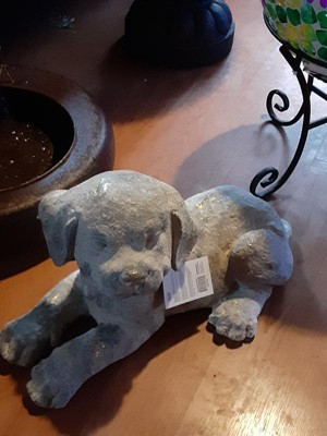 [This review was collected as part of a promotion.] Love this puppy statue! I added this statue to my flower garden to remember our dog who passed in January. It's the perfect size and even has a little gold on the top to shine in the sun. It's weighted so it won't tip over from the wind. The light grey color is a good color to stand out from the flowers. Makes me smile every time I see it.