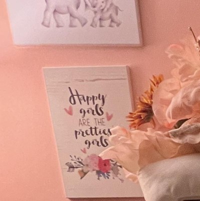 10"x0.5"x15" Happy Girls Prettiest Kids' Wall Plaque Art - Stupell Industries: Modern Canvas for Girls Room Decor
