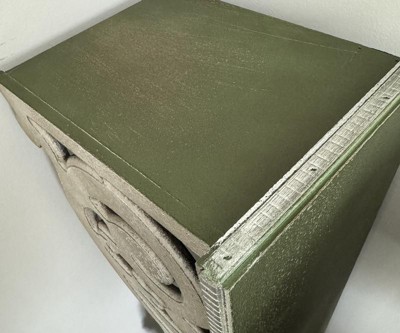 A. The sides and top of this are a hideous shade of green, not at all noticeable in the pictures and also why?? B. It didn’t come with any mounting hardware as mentioned. Returning disappointed.