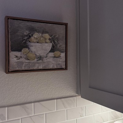 Refresh any room with a touch of zesty charm with this Lemon Bowl Still Life on Burlap Framed Wall Art from Hearth & Hand™ with Magnolia. Encased in a gorgeous brown polystyrene frame, this still life burlap wall art showcases lemons in a bowl to create a calm atmosphere in any room in your home. Plus, the frame features a sawtooth back for easy hanging.
