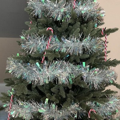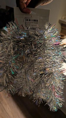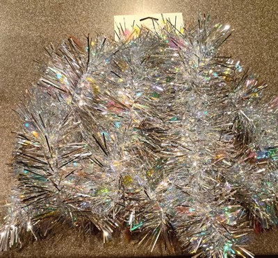 I can't wait to see this on my Christmas tree with all the decorations and ornaments!! It'll definitely shine even more when the Christmas lights are on. This is just your typical tinsel, shiny and iridescent.