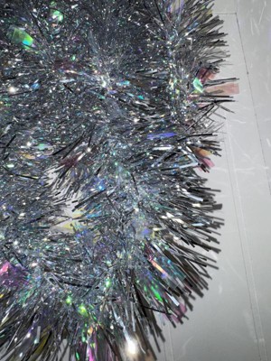 10' Christmas Tinsel Garland Mega Wide Cut Iridescent and Narrow Cut Silver - Wondershop™