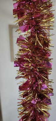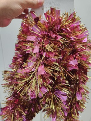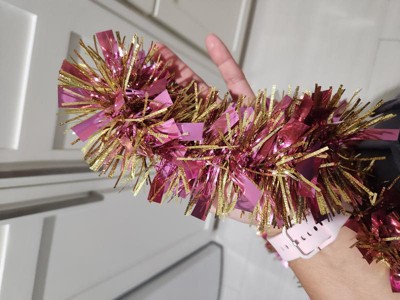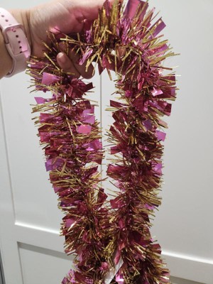 10' Christmas Tinsel Garland Mega Wide Cut Pink and Narrow Gold - Wondershop™