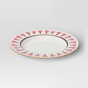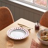 Bring a touch of style to your mealtimes with this Floral Stoneware Dinner Plate from Threshold™. This round stoneware dinner plate features a red floral print along the rim on a white background, making it an excellent pick for everyday meals or special occasions. Microwave safe for reheating food, you can toss it in the dishwasher for easy cleanup.