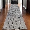10' Black And Gray Geometric Shag Runner Rug