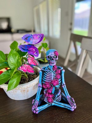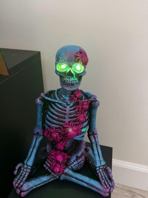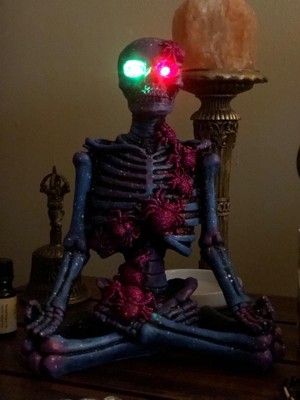 [This review was collected as part of a promotion.] This little Galaxy Yoga Skeleton is such a fun and unique Halloween decoration! Instead of being spooky, it has a whimsical and calming vibe that makes it stand out from typical skeleton décor. The yoga pose gives it a peaceful, balanced look, and the LED lights in the eyes bring a magical touch that shifts through vibrant colors — it really glows beautifully at night. The size is perfect for placing on a shelf, table, or even mixing in with other Halloween pieces for a playful twist. I love how it adds both charm and character to my seasonal décor. Highly recommend for anyone looking to add something different and eye-catching to their Halloween setup!