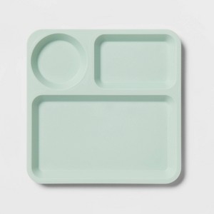 Make mealtimes fun for your child by serving their favorite food items together in the 10-Inches Plastic Kids' Square Divided Plate from Pillowfort™. This kid's divided plate comes with three sections to help keep the food separate. Made with plastic, this divided plate is dishwasher safe and microwave safe for reheating only.
