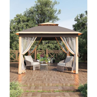 10'x10' Instant Pop-Up Canopy Tent with Removable Mosquito Netting & 2 Zipper Doors, Portable Outdoor Shelter - Includes Wheeled Carry Bag Beige