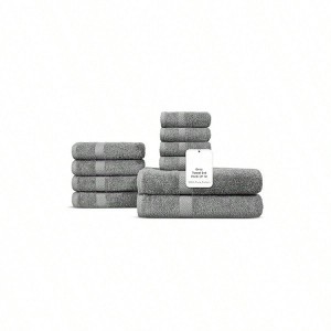 100 Combed Cotton Bath Towel Set, 10 Pieces, Soft Absorbent, Spa, Grey