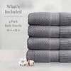 100 Cotton Bath Towel 4 Pack, Super Soft, Quick - Dry, 30x52, Charcoal Grey