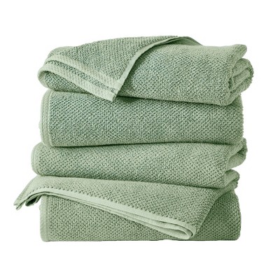 [This review was collected as part of a promotion.] These towels are perfect! They are the perfect texture: absorbent and not too soft! The diamond weave texture also gives them a more luxe look and feel. They are a good size set: bath towel, hand towel and wash cloth are all pretty standard sized. They’ve held up well to washing. I highly recommend these!