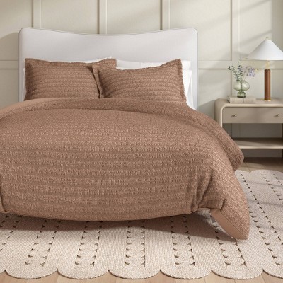 [This review was collected as part of a promotion.] This a cozy winter duvet cover. It looks warm and inviting on the bed. It has some texture, but isn’t scratchy. It’s also, quite thick, so better suited to colder months.