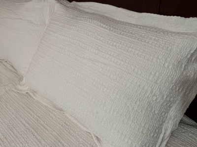 Texturehoneycomb waffle for an elevated look with a smooth percale reverse