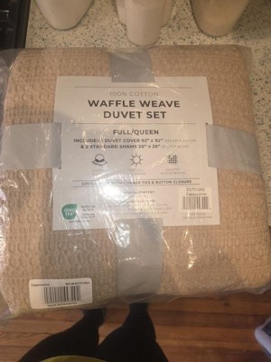 [This review was collected as part of a promotion.] I’m seriously impressed. Right out of the package, I could feel the quality. The cotton waffle texture adds a touch of cozy elegance to my bedroom, and it looks effortlessly chic on my bed. The fabric is soft and breathable—perfect for year-round comfort. It feels lightweight but still keeps me warm at night, and I love that it's made from 100% cotton. It washed beautifully with no shrinkage or pilling, and the texture stayed intact. The duvet cover has corner ties, which help keep the insert in place (no more bunching!), and the hidden button closure adds a clean, finished look. I haven’t added the insert but it already lays true to size and drapes nicely without being bulky. If you're looking to upgrade your bedding with something simple, stylish, and high-quality, this set is a win. Highly recommend!