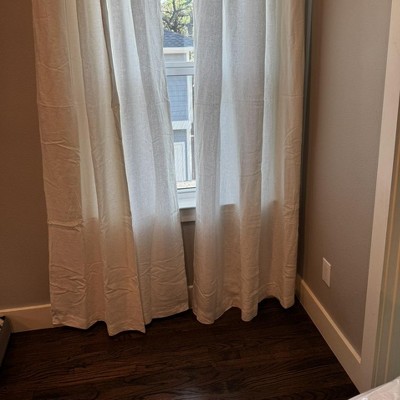 Absolutely thrilled with my curtains! The Linen and the cotton liner makes them feel heavy and substantial. And it makes it dark enough for privacy. (our window faces a park) Visually it’s a good balance, allowing just the right amount of light in. It came with both rod pockets and back tabs so easy install. It also comes with three length options which I wasn’t expecting and was great since we found one that lined perfectly. neutral color blended seamlessly with our light grey kitchen. And the fact that they're machine washable. Coudlnt be happier.