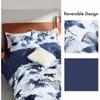 100 Long Staple Cotton Duvet Cover Set, Navy Blue Leaves Watercolor Pattern