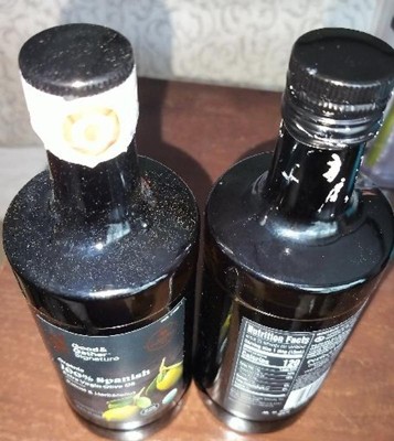 So far I love the presentation of the bottle which is 100% Extra Virgin Olive Oil from Spain. This means .. it does not contain olive oils from other countries or is a mix from other countries bottled in Spain. As for the taste let me check... perfect.. especially for what I needed for...to make my own focaccia bread. It does have a cap with a seal, which is great. Target even how still managed to put some tape around it to make sure it did not spill on the way when it was shipped, also it did arrive with special wrapping paper and additional tape around the bottles. Thank You. Shipping was delayed by one day but hey I understand. I did get the oil I needed.