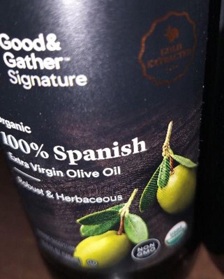 Elevate your dishes with the robust, herbaceous flavor of this 100% Organic Spanish Extra Virgin Olive Oil from Good & Gather™. This blend of olive oil is cold extracted from 100% Spanish olives for a taste your whole family will enjoy. A versatile pantry staple that is USDA organic, non-GMO and Kosher certified. With its beautifully rich color and flavor, it makes a great addition to marinades and salad dressings, or you can simply drizzle on toasted bread or sliced tomatoes for a quick and tasty appetizer.