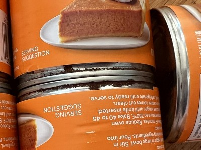 Both of these cans of pumpkin I totally dented it up in unacceptable. Everyone knows you don’t purchase or use cans that are dented. It’s a health risk!