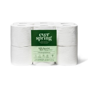 100% Recycled Toilet Paper Rolls from Everspring™ are a great pick to help you feel better about your environmental footprint as you clean up. This toilet paper is made from 100% recycled paper with a minimum of 50% post-consumer recycled materials, and it's Forest Stewardship Council Certified. The pack comes with two-ply toilet paper that's both soft on skin and strong enough to thoroughly clean without tearing. It's free of added dyes and fragrance and whitened without chlorine bleach to help you achieve a cleaner home.