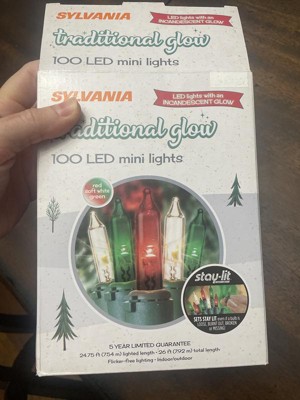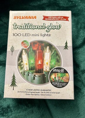 100ct LED Sylvania Stay-lit Incandescent Look Indoor/Outdoor Miniature String Lights Red/White/Green with Green Wire