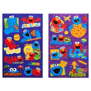 - Sticker sheets feature a variety of Elmo stickers.
