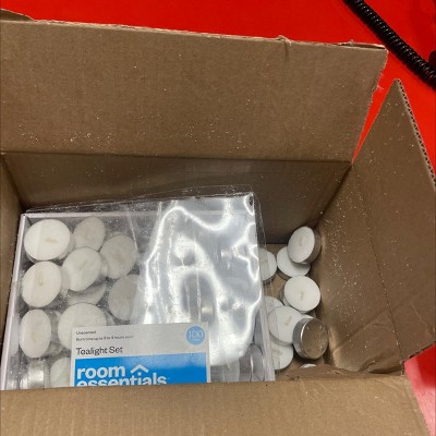 This is my second purchase of this item. The packaging is awful! The container doesn’t stay closed because it’s got a flimsy thin plastic lid, and whomever does the shipping isn’t quite bright enough to tape it shut. I received this and a small bottle of another product, and the entire inside of the box was covered in a powder-type substance. After studying it a bit to determine whether or not this would make me ill, I decided it must be the candle wax that’s been loosened from the tea lights during transit. And after opening the box on what is clearly marked as the top, I realized that the box of tea lights was put into the box upside down, so the 100 little tea lights are now sitting in the soiled shipping box. So this shipment was one royal mess. I hope that my assumption on the substance is correct, or Target will be even less satisfied with this sale than I am. NOT HAPPY WITH THIS!